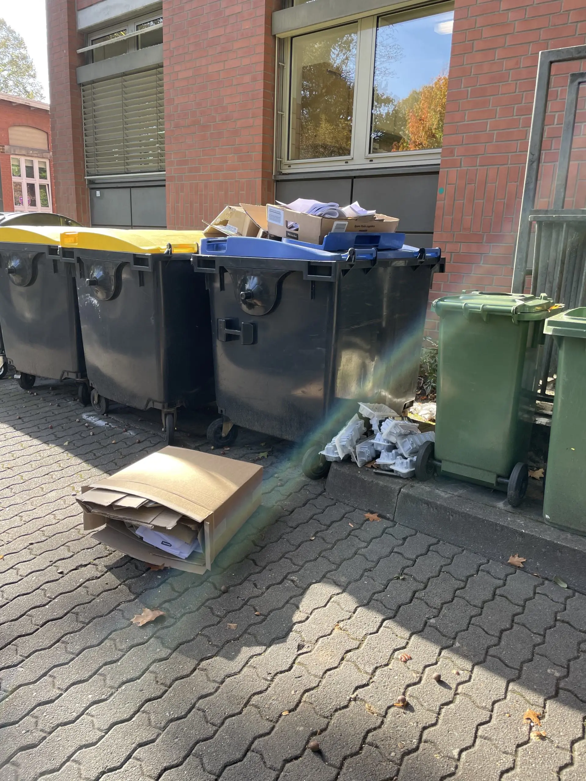 Schlüter sagt, die Krankenhäuser würden „zwischen allen Stühlen sitzen”. Und je länger man ihm zuhört, desto besser kann man das verstehen. Die Politik macht unklare, für Krankenhäuser nur schwer umzusetzende Vorschriften. Die Hersteller verpacken Produkte unnötig oft einzeln, außerdem gibt es zu viele Verbundverpackungen, die das Klinikpersonal im hektischen Alltag dann auch noch in ihre Bestandteile wie Plastik und Papier zerlegen müsste. Und dann sind da auch die privaten Entsorger, die die gelben Tonnen von den Krankenhäusern abholen. Auf sie ist Schlüter nicht besonders gut zu sprechen.
