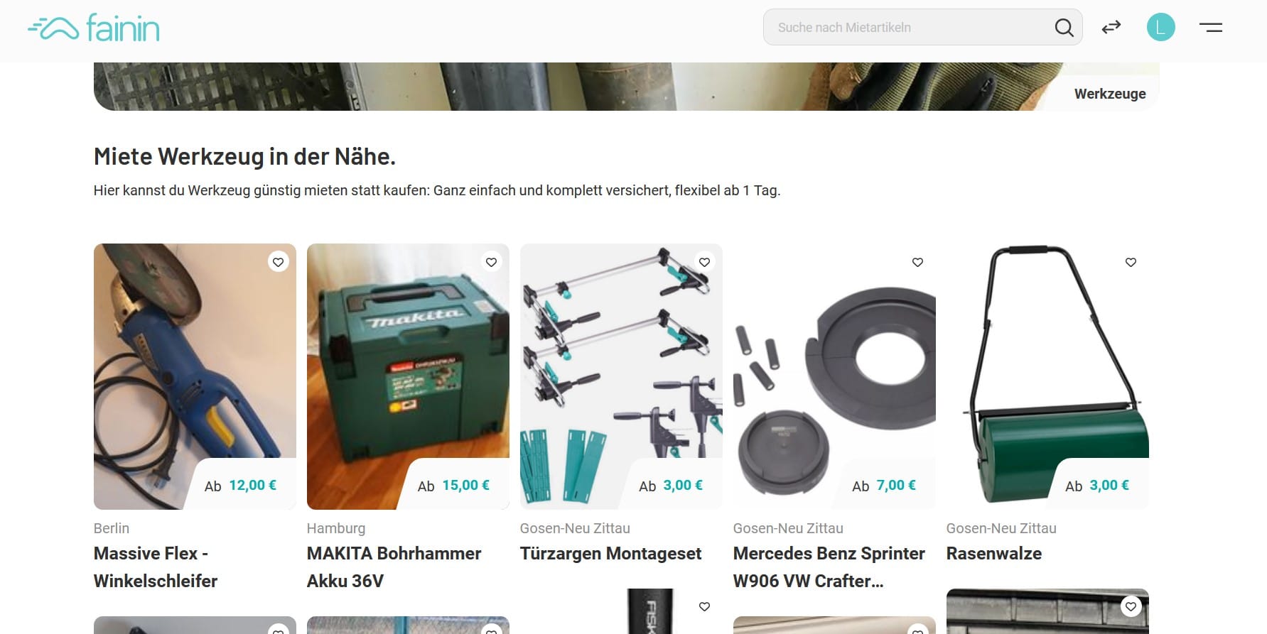 Sucht man einen bestimmten Gegenstand, kann nach Standort gefiltert und eine Ausleihdauer eingestellt werden. Will man beispielsweise einen Bohrer in Hamburg mieten, kostet das zwischen fünf und 15 Euro am Tag. Bei jedem Verleih berechnet fainin eine Servicegebühr von 15 Prozent zum Mietpreis hinzu.