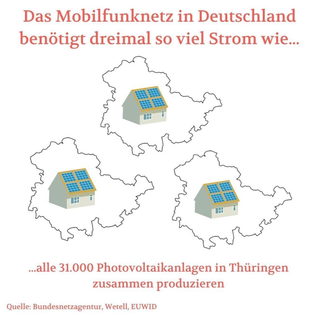 Die erste Frage, die wir uns gestellt haben: Wieviel Strom frisst der Mobilfunk eigentlich? Dazu muss man sagen: Wetell geht es nicht um den Strom, den man zum Laden seines Akkus verbraucht. Auch nicht um den, der bei der Produktion des Smartphones drauf geht. Es geht um die Mobilfunk-Infrastruktur, also Funkmasten und Rechenzentren, die laut Studien den meisten Strom verbrauchen.