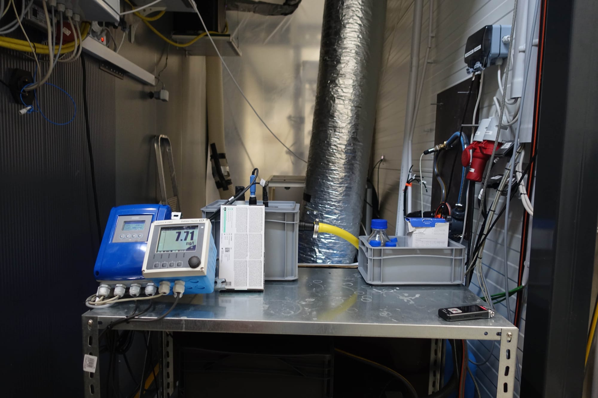 Flip-Autorin Leoni Bender hat die Pilotanlage von vGreens in Essen besucht. Im Eingangsraum stehen jede Menge Kanister und Messgeräte, Schläuche führen in die Wand. Es rattert und rauscht. Insgesamt 300 Liter Wasser zirkulieren von dort aus durch die Pflanzenwurzeln, Nährstoffe werden zugesetzt. „Wir überwachen kontinuierlich Nährstoffgehalt, Säuregehalt, Temperatur, Sauerstoffgehalt und die Lichtverhältnisse, um das optimale Wachstum der Erdbeeren sicherzustellen”, erklärt Mitgründer Stefan Hey, ein promovierter Pflanzen-Genetiker.
