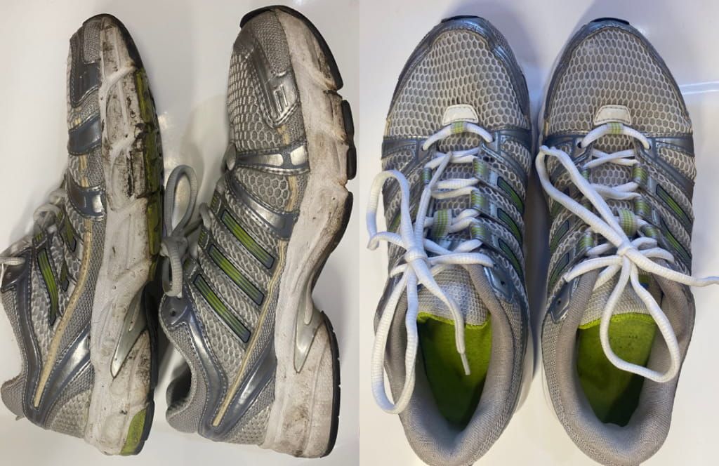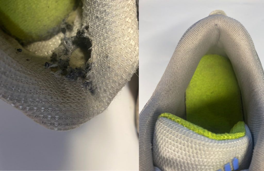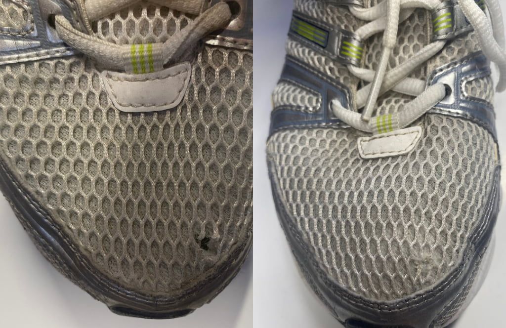 Die durchgescheuerten Fersen wurden von Sneaker Rescue für 37,50 Euro repariert. Für die Reinigung hat Carmen 30 Euro gezahlt. Das Loch vorne am Sneaker wurde für 14,99 gestopft. Trotz des hohen Preises lautet Carmens Fazit: “Es hat sich gelohnt, die Schuhe sehen aus wie neu.”
