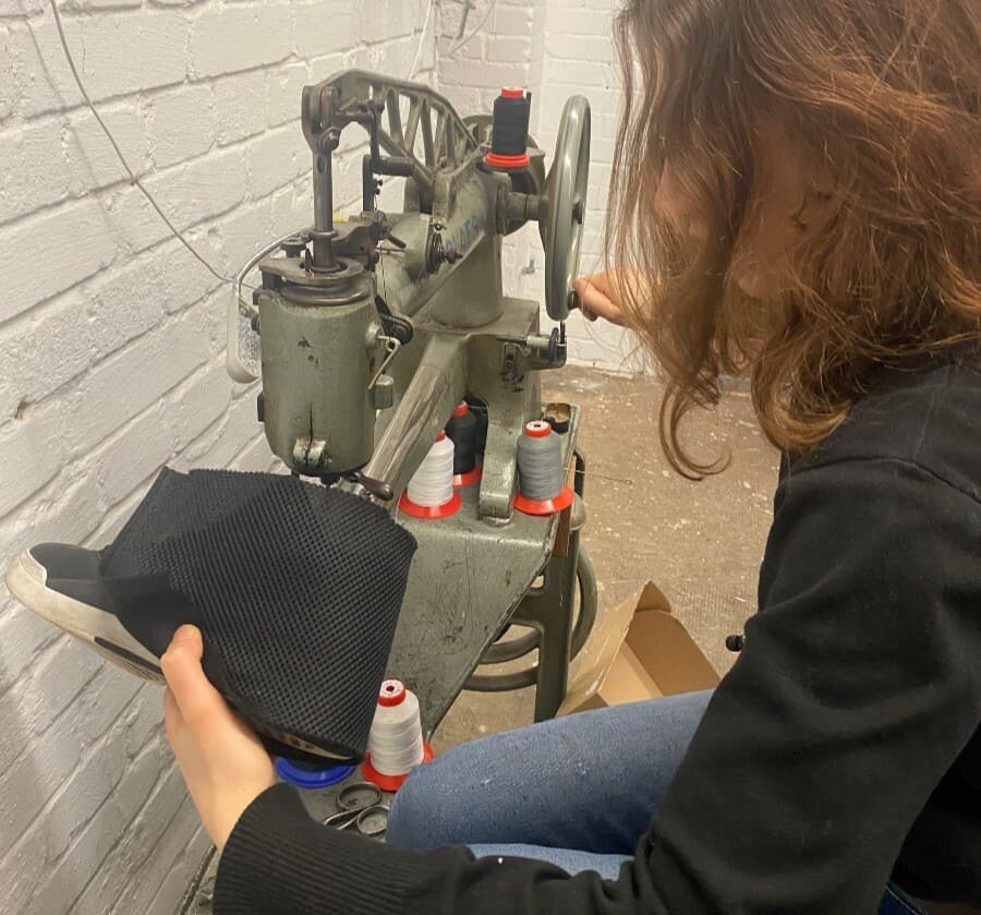 Aus Nachhaltigkeitssicht ist es tatsächlich gar nicht so schlecht, dass die Hersteller für ihre Schuhe keine Ersatzteile anbieten. So kann Sneaker Rescue die oft minderwertigen und umweltschädlichen Materialien durch solche ersetzen, die besser und nachhaltiger sind, weil sie zum Beispiel weniger Mikroplastik abgeben oder recycelt wurden. Doch Matuszak steht dabei oft vor einem weiteren Problem: In den kleinen Stückzahlen, die das Start-up bisher ordert, seien nachhaltige Materialien oft zu teuer, sagt er. Bisher achtet Sneaker Rescue also in Sachen Nachhaltigkeit nur darauf, dass sie Sohlen aus Deutschland beziehen. Das Mesh, also das Material, mit dem das Innenfutter der Schuhe ersetzt wird, kommt aus Europa, meist aus Italien. Bis Matuszak zum Beispiel recycelte Sohlen für die Reparatur einsetzen könne, müsse Sneaker Rescue erst finanziell auf sicheren Beinen stehen. Das könnte bald der Fall sein: In diesem Jahr stehen mehrere Finanzierungsgespräche mit möglichen Investor:innen an. Mit dem Geld will Matuszak auch neue Maschinen kaufen, mit denen er zum Beispiel alte Schuhsohlen schreddern könnte, um daraus wieder neue herzustellen.