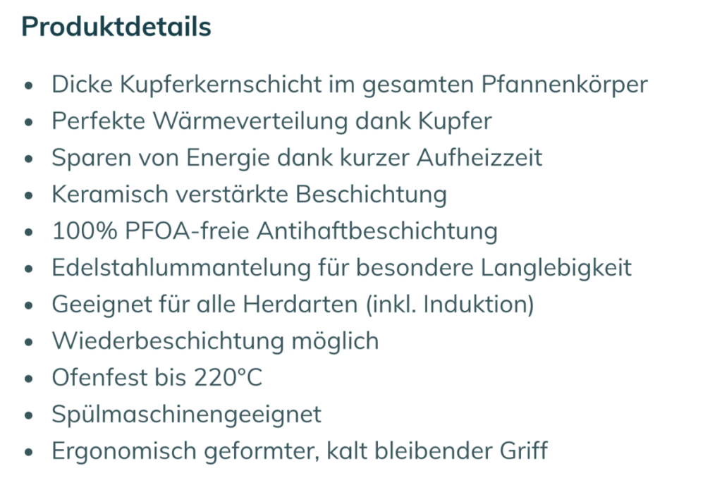 Nur: was bedeutet das eigentlich? Wie viele Jahre hält denn eine Olav-Pfanne mindestens? Und hat Olav eine Lebenszyklusanalyse erstellen lassen, die die Umweltauswirkungen des Produkts systematisch untersucht? Eine konkrete Mindestlebensdauer nennt Olav nicht. Eine Lebenszyklusanalyse legt es auch nicht vor. Die Pfanne sei aber robust. “Dies liegt daran, dass der Körper der Pfanne rein mechanisch aufgebaut ist, indem eine Scheibe des 5-Schicht Materials in einem mechanischen Prozess in die finale Form gepresst wird.”